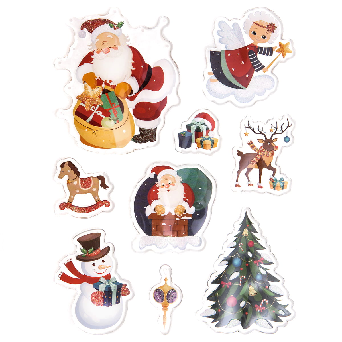 Naklejki żelowe z brokatem Święta 8 sztuk, DP Craft
