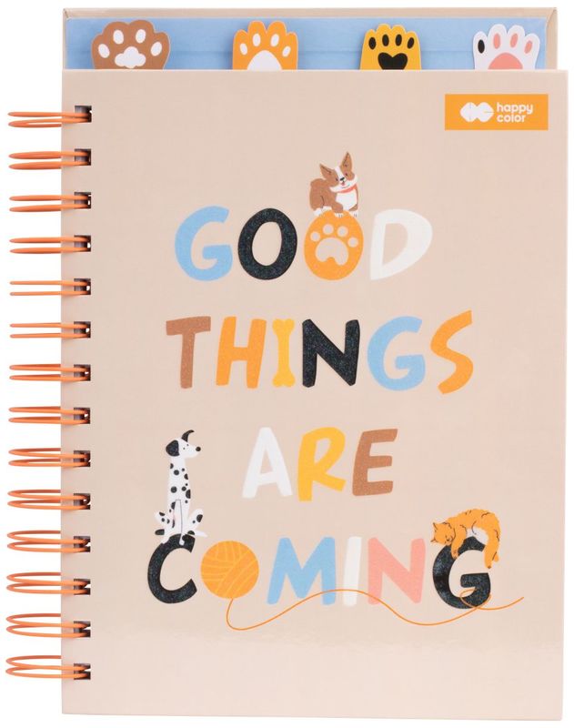Notes na spirali Cat&Dog z przekładkami, A5, 80 ark, 80g/m2, kratka/ kropki/linie/gładki, Happy Colo
