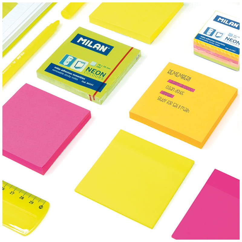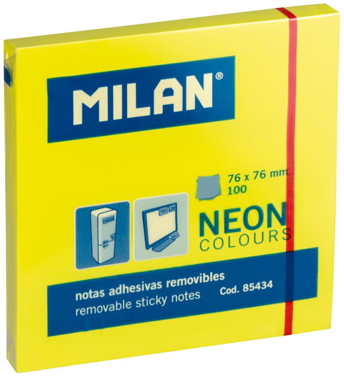 Karteczki samoprzylepne w neonowym żółtym kolorze. Rozmiar: 76 x 76 mm, 100 kartek.