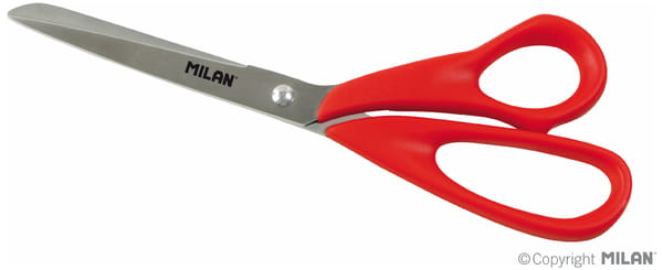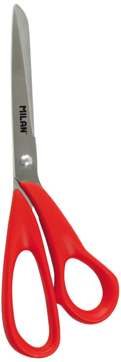 Nożyczki biurowe o długości 20 cm z ostrzem ze stali nierdzewnej. Czerwony plastikowy uchwyt odporny na wstrząsy. Oryginalny produkt stworzony przez własny dział badawczo-rozwojowy MILAN. Rozmiar nożyczek: 20 x 6,8 x 1,3 cm.