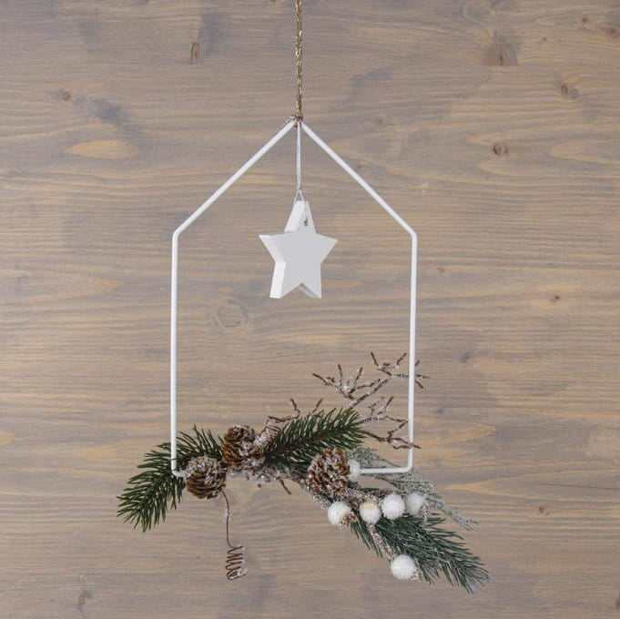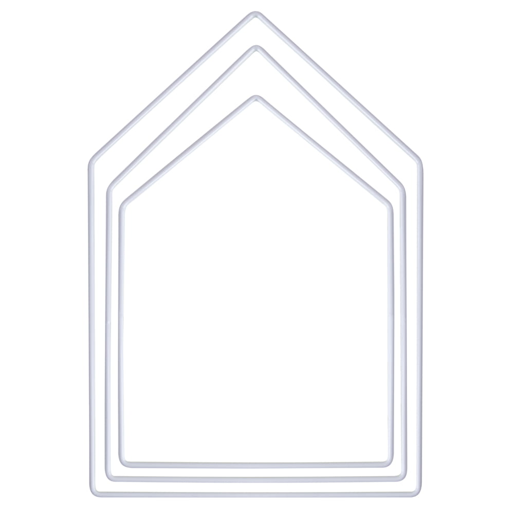 Metalowe obręcze w kształcie domków o kolorze białym to idealne bazy do rozmaitych dekoracji typu home decore, ogrodowych i okolicznościowych. Można ozodbić je różnego rodzaju sznurkami lub elementami naturalnymi i florystycznymi.