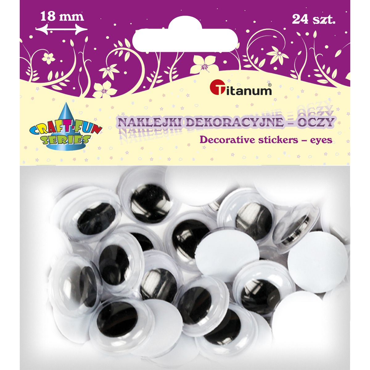 Oczy samoprzylepne czarne 18mm okrągłe 24szt., Craft Fun