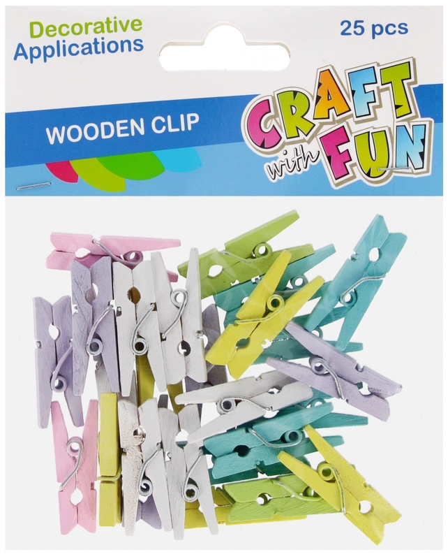 Ozdoba dekoracyjna drewniane spinacze kol. pastelowe 2,5cm 25szt., Craft With Fun