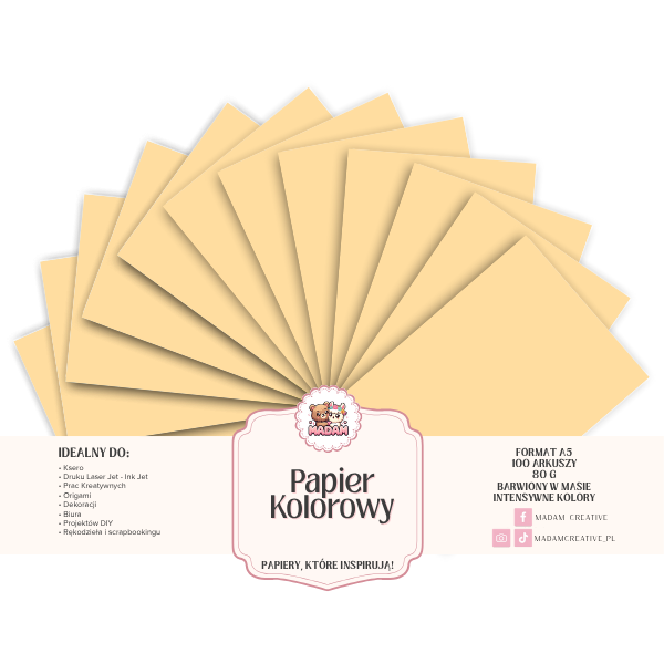 Papier Ksero Kolorowy Beż waniliowy A5 80g 100 arkuszy, MaDam Creative