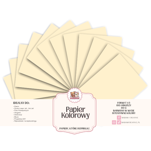 Papier Ksero Kolorowy Krem śmietankowy A5 80g 100 arkuszy, MaDam Creative