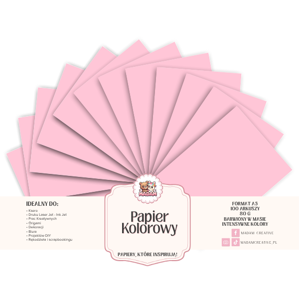 Papier Ksero Kolorowy Róż pastelowy A5 80g 100 arkuszy, MaDam Creative
