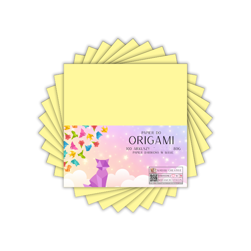 Papier do origami kwadraty 15x15 cm Pastelowy waniliowy żółty 100 arkuszy, MaDam Creative