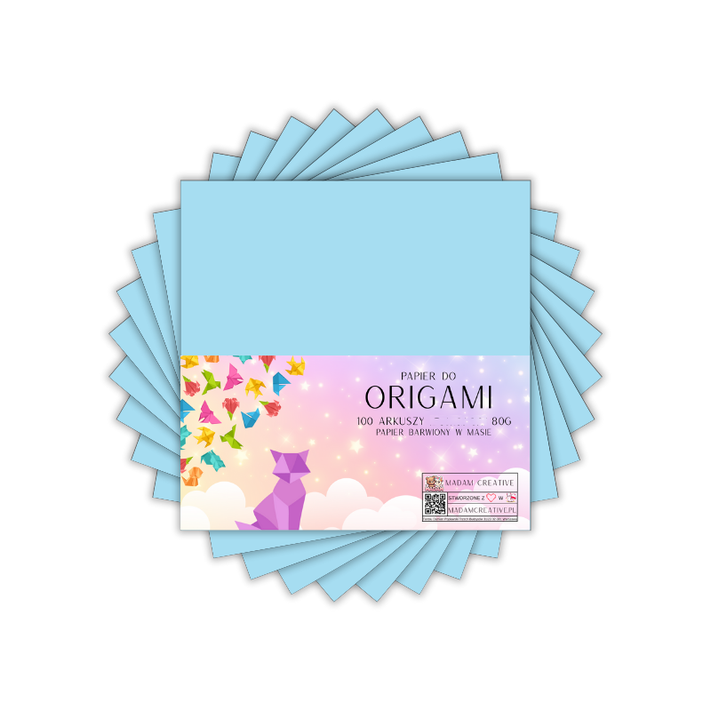 Papier do origami kwadraty 20x20 cm Błękit lodowy 100 arkuszy, MaDam Creative