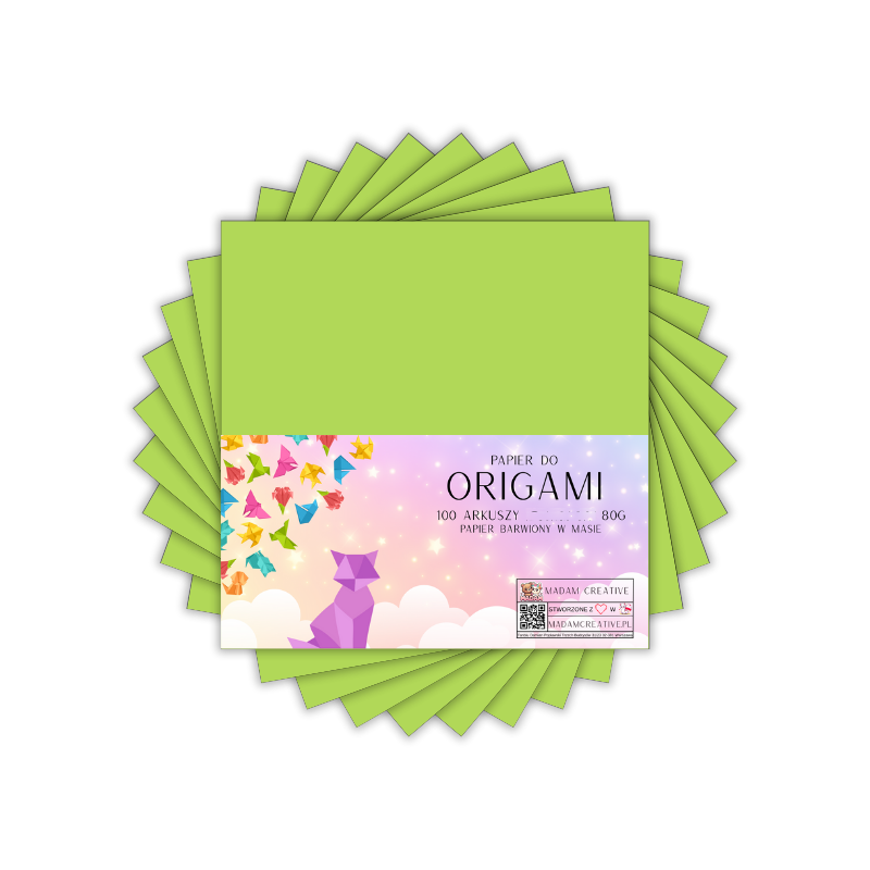 Papier do origami kwadraty 20x20 cm Zieleń limonkowa 100 arkuszy, MaDam Creative