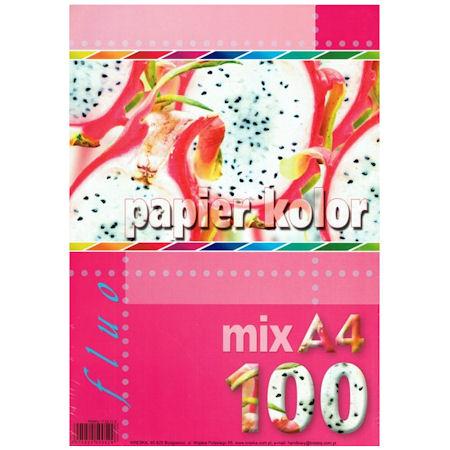 Papier kolorowy mix Fluo A4 80g 100 ark., Kreska