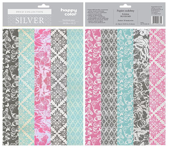 Papiery ozdobne SILVER MIX 10 motywów 20x29 cm, Happy Color