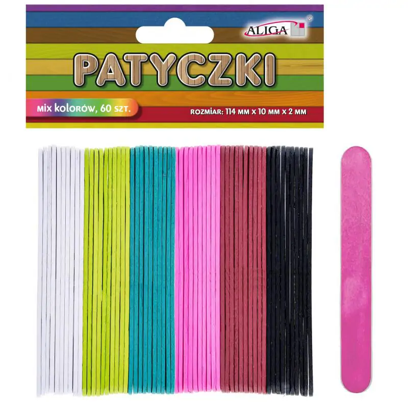 Patyczki drewniane kolorowe mix 114x10x2 mm 60 sztuk, Aliga