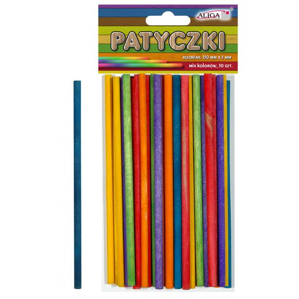 Patyczki kreatywne kolorowe 150x5mm 50szt, Aliga