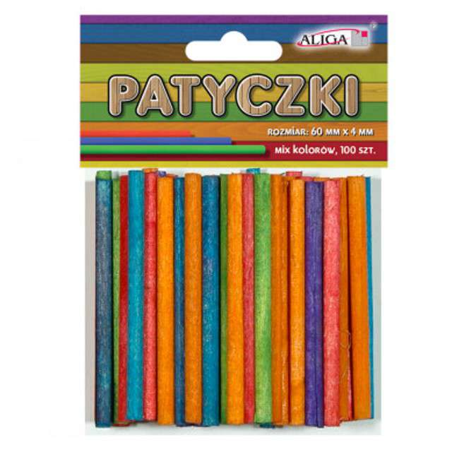 Patyczki kreatywne kolorowe okrągłe 60x4mm 100szt, Aliga