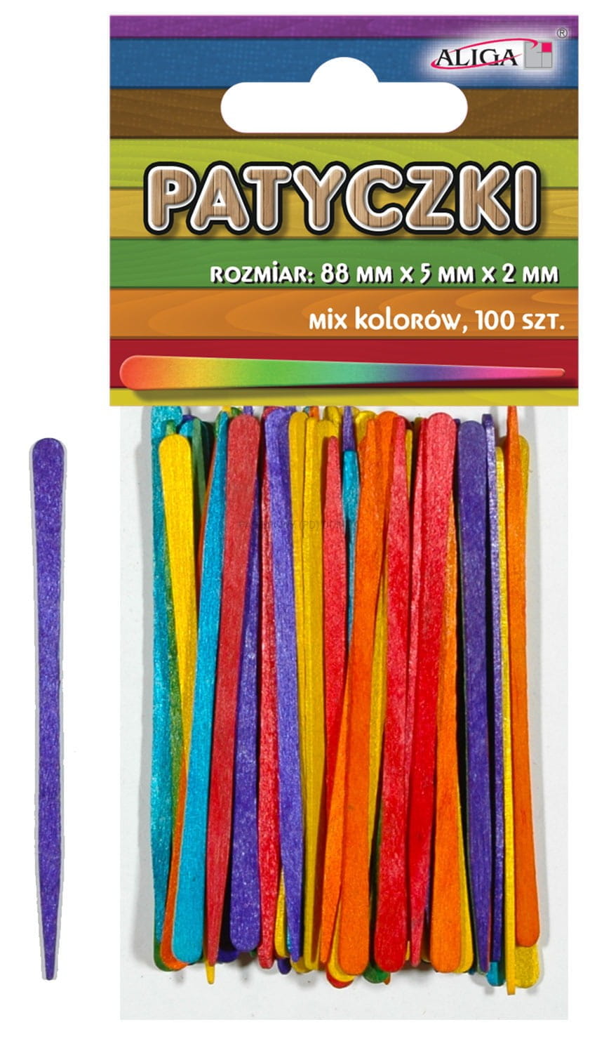 Patyczki kreatywne mix kolorów 88x5x2mm op. 100szt, Aliga