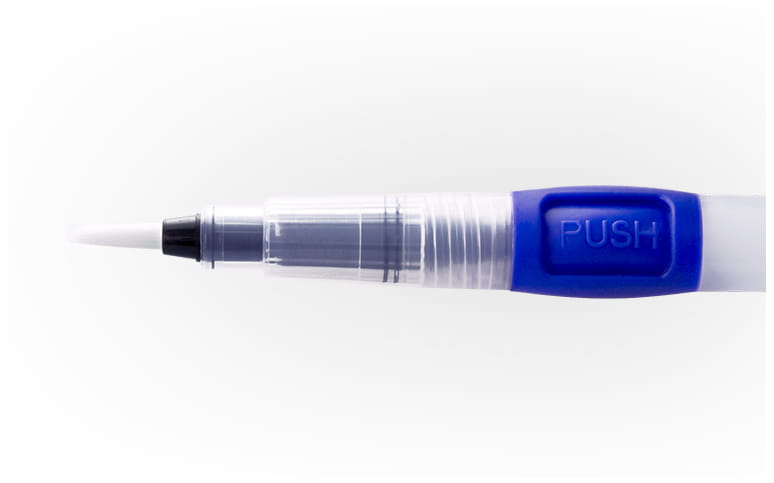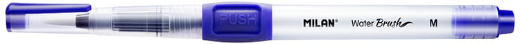 Pędzel wodny ze zbiorniczkiem na wodę 8 ml. Niezastąpiony przy pracy z farbami akwarelowymi, kredkami akwarelowymi, ołówkami i pastelami. Można stosować w użyciu z wodą ale także z tuszami i niemal wszystkimi rodzajami farb płynnych. Gumowy przycisk ułatwia i reguluje dawkowanie płynu. Końcówka z włosia syntetycznego o średnica 4 mm. Rozmiar pędzla: 13,5 x 1,7 cm.