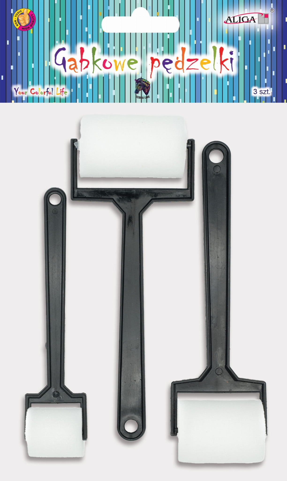 Pędzelki kreatywne gąbkowe do farb zestaw 3 wałków PGW-3462, Aliga