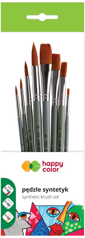 Pędzle artystyczne nylonowe zestaw 8 sztuk, Happy Color