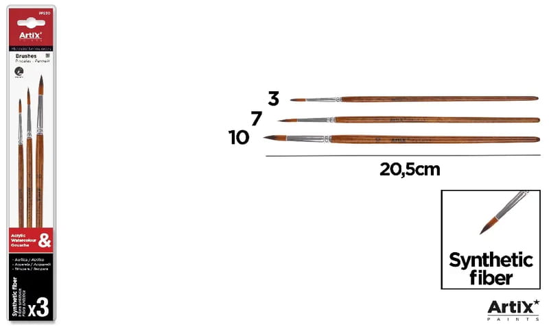 Pędzle syntetyczne zestaw 3 szt. okrągłe nr 3, 7, 10 Artix, Main Paper