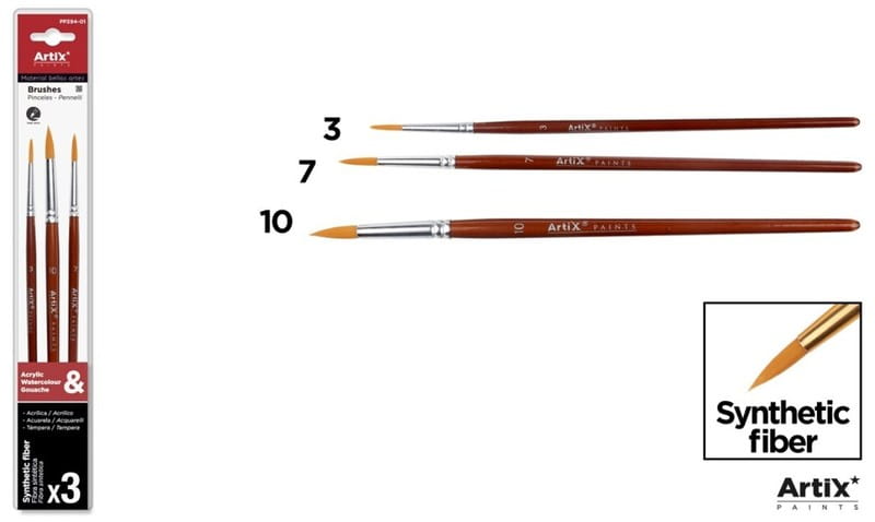 Pędzle syntetyczne zestaw 3szt. okrągłe nr: 3, 7, 10 PP394-01, Main Paper