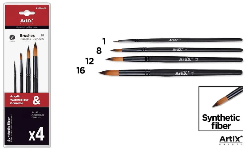 Pędzle syntetyczne zestaw 4szt, Main Paper