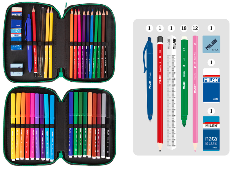 Piórnik 2-poziomowy z wyposażeniem Dino, Milan