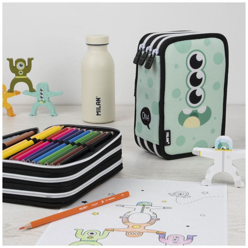Piórnik 3 poziomowy z wyposażeniem Aliens zielony, Milan