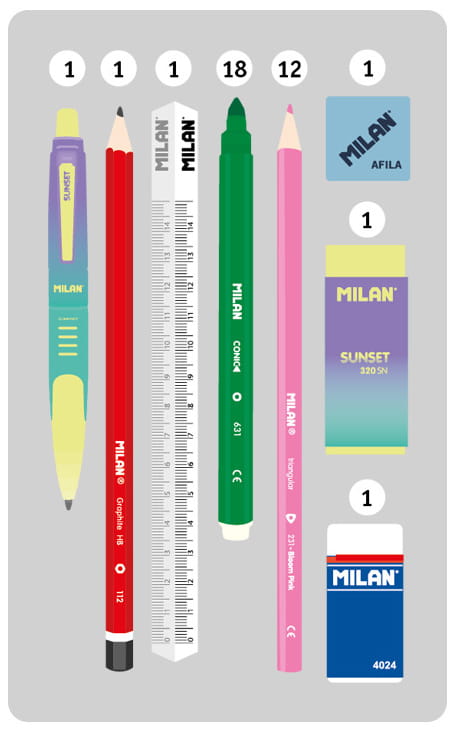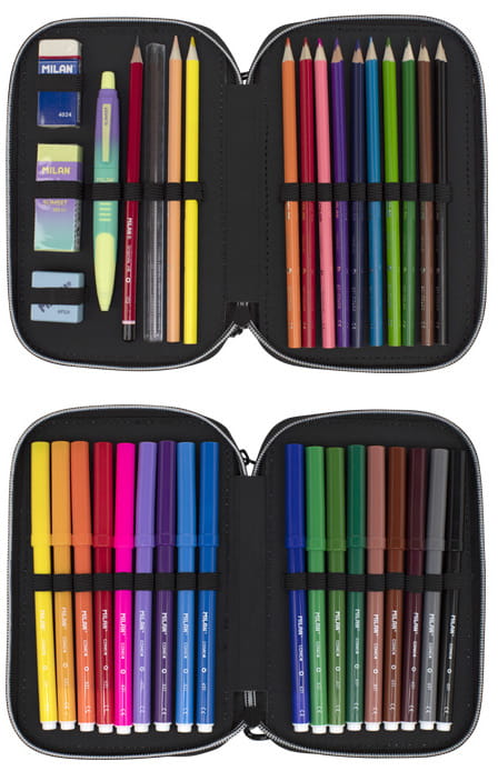 Dzięki trójkątnej budowie kredka jest ergonomiczna i wygodnie trzyma się dziecku. Flamastry MILAN posiadają wytrzymałą i elastyczną stożkową końcówką, która nie wpada do środka nawet przy silnym nacisku. Po chwilowym odkształceniu końcówka zawsze wraca do pierwotnego kształtu. Tusz na bazie wody. Flamastry nie zawierają ftalanów, metali ciężkich i innych. Temperówkę z bezpiecznym przykręconym ostrzem dzięki czemu ostrze nie oddzieli się od obudowy temperówki. Gumkę z naturalnym kauczukiem. Tkanina zewnętrzna „Ripstop”: lekka i odporna na rozdarcia. Wykorzystuje specjalną technikę, która tka grube, wzmacniane nici w regularnych odstępach, tworząc wzór krzyżowy. Materiał zewnętrzny i wewnętrzny 100% poliester. Rozmiar: 19,5 x 13 x 5 cm.