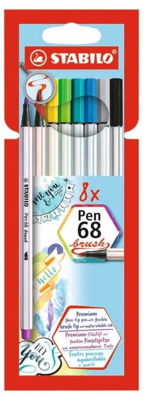 Pisaki pędzelkowe Stabilo 8 kolorów Pen 68 Brush