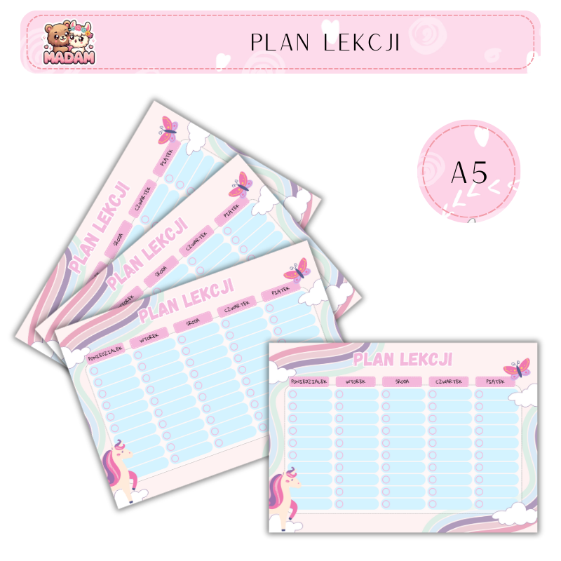 Plan Lekcji Jednorożec A5, MaDam