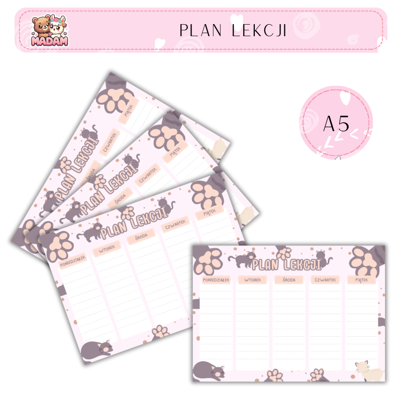 Plan Lekcji Kocie Łapy A5, MaDam