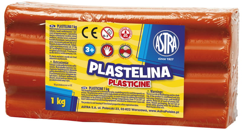 Duże opakowanie plasteliny Astra 1 kg w sam raz do większych prac kreatywnych, do nauki i zabawy w szkołach, przedszkolach. Doskonale sprawdzi się również w trakcie prowadzenia zajęć terapeutycznych wpływając na rozwój motoryki małej.