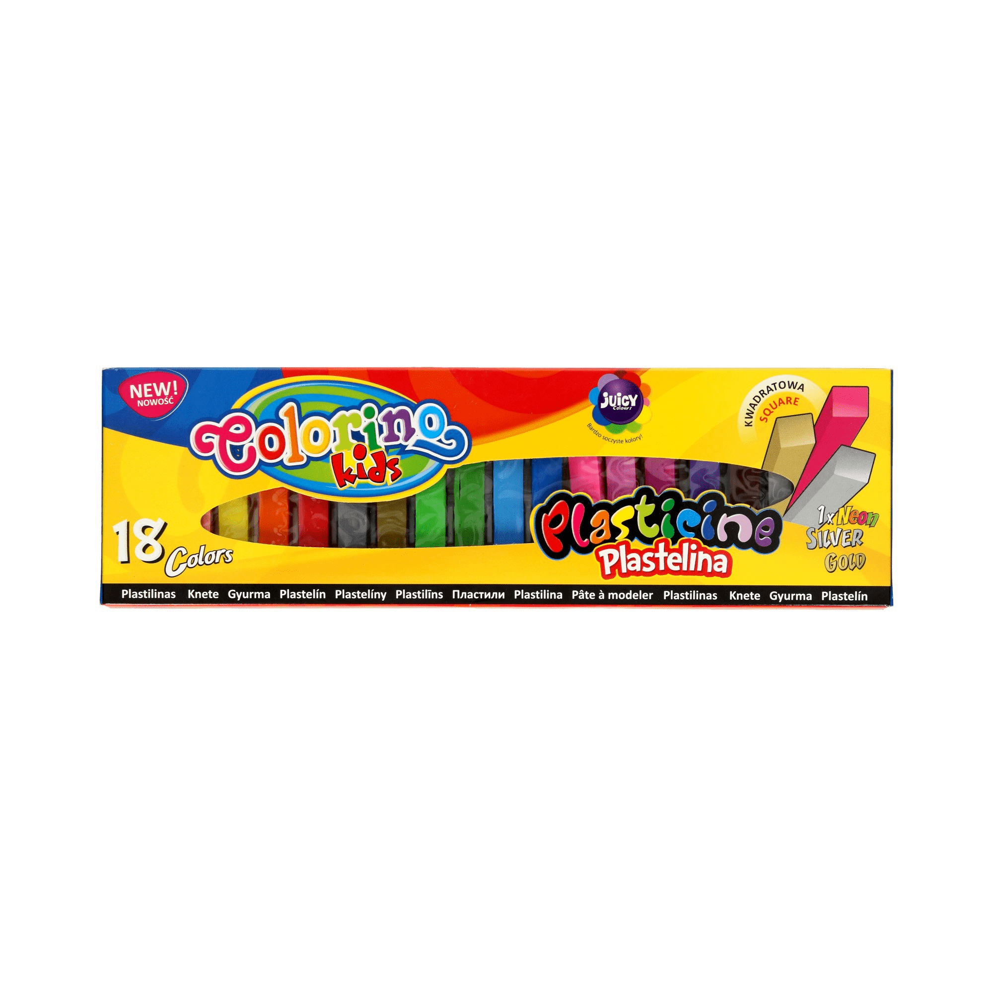 Bardzo miękka, kwadratowa plastelina w 18 kolorach wśród których jest 1 kolor neonowy oraz złoty i srebrny