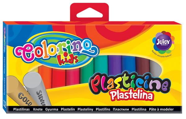 Plastelina szkolna zestaw 12 kolorów w tym złoty i srebrny Colorino