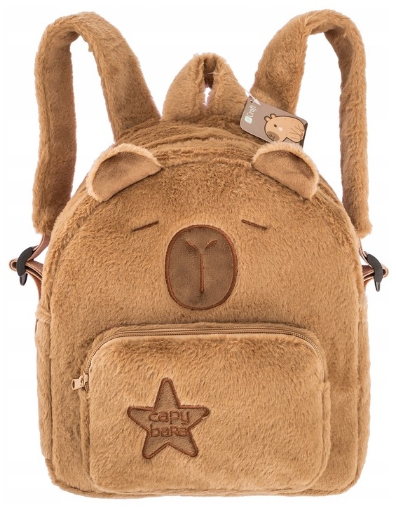Plecak pluszowy z motywem kapibary o wymiarach 28 x 25 x 11 cm. Miękki i przyjemny w dotyku, idealny dla dzieci i miłośników uroczych akcesoriów.