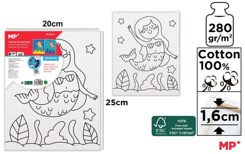 Podobrazie bawełniane 20x25cm z nadrukiem syrenka PP103-21, Main Paper