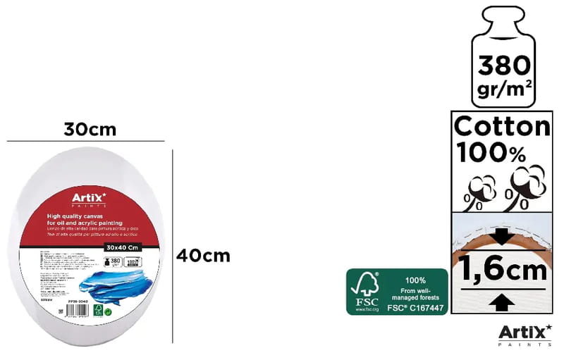 Podobrazie owalne 30x40x1.6CM 380g/m2, Artix