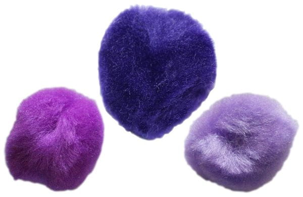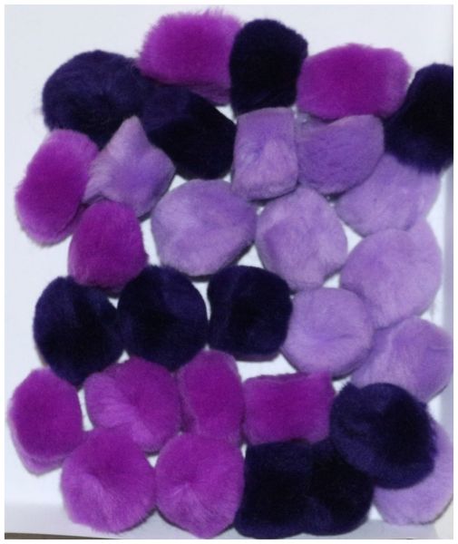 Pompony akrylowe. Kolor: tonacja fioletowa, średnica: 25 mm. 30 szt.