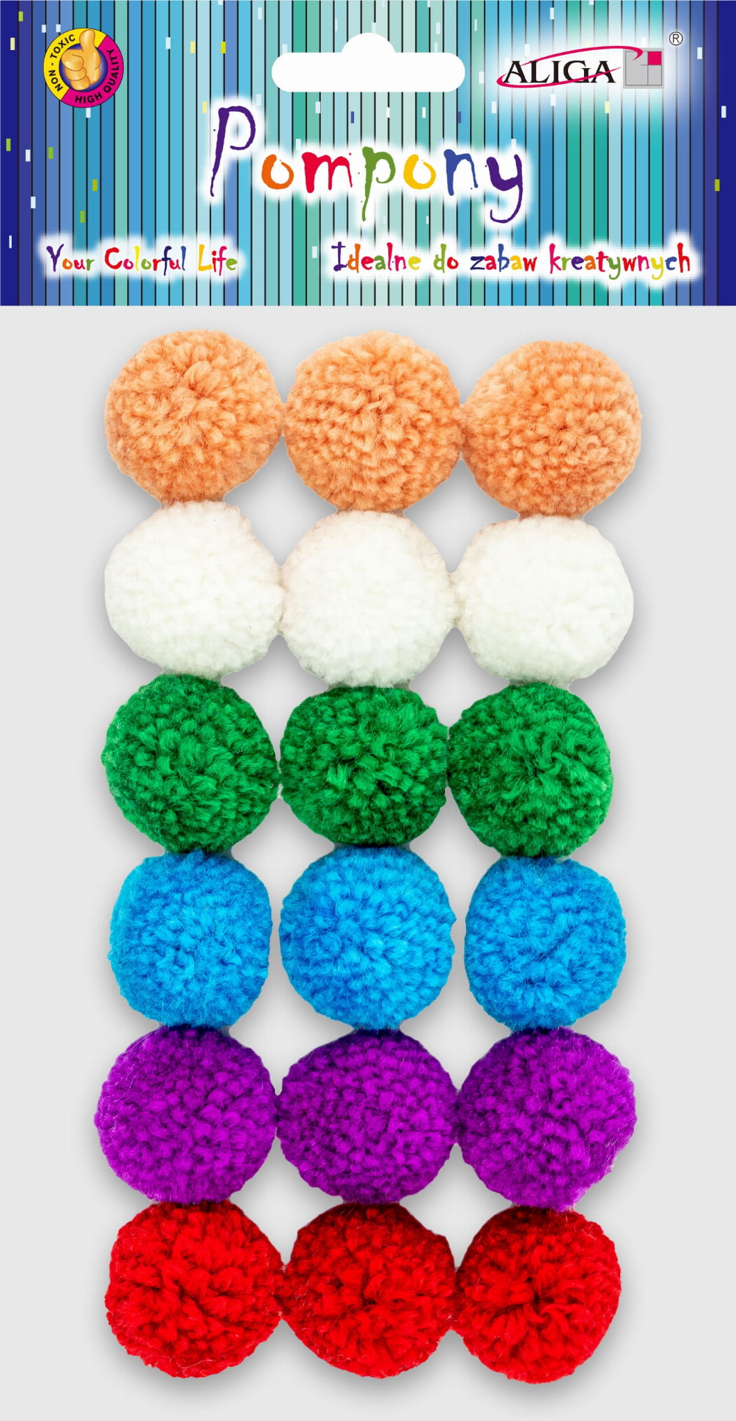Pompony włochate kolorowe 3 cm 18 sztuk, Aliga
