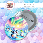 Przypinka 58mm MaDam Przypinka Pingwinki pod zorzą polarną – Najbardziej stylowy sposób na spędzenie zimy? Pod zorzę polarną!
