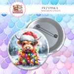 Przypinka 58mm MaDam Świąteczny byczek z lampkami – Rudolf już może odpocząć, ten byczek przejmuje święta!