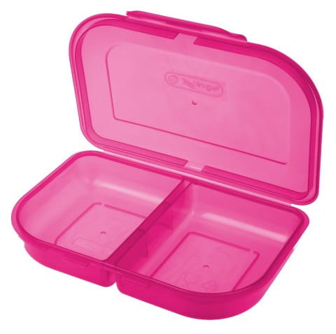 Śniadaniówka marki Herlitz. Wykonana z trwałego, pół-przezroczystego kolorowego plastiku. Praktyczne zamknięcie oraz dwie komory ułatwiają pakowanie śniadania. Wymiary: 23 cm x 13 cm x 4 cm. Kolor: różowy.