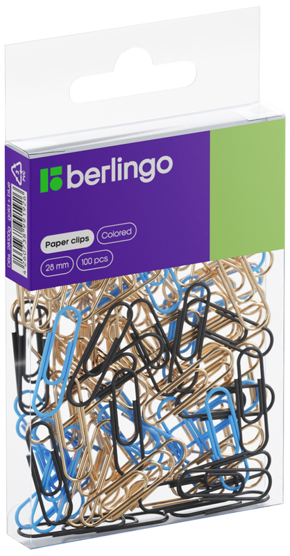 Spinacze do papieru 28mm. op. 100 szt. niebieskie, czarne i złote, Berlingo