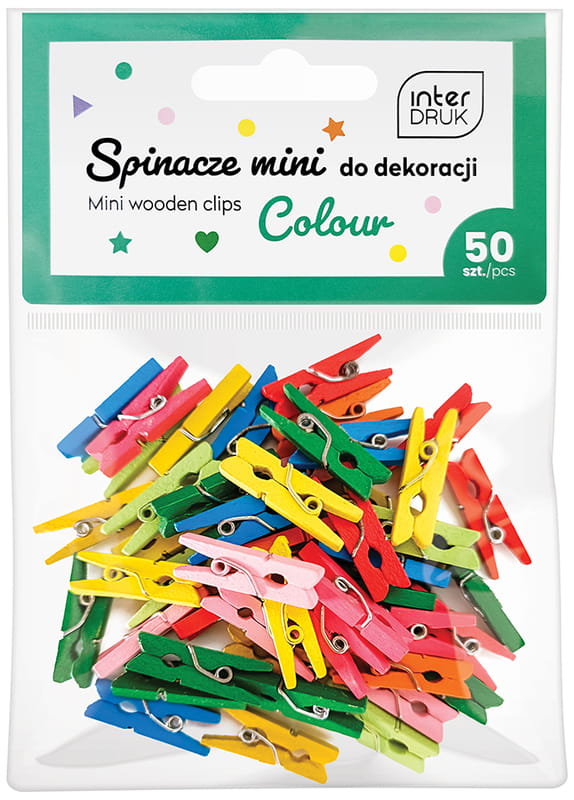 Spinacze drewniane klamerki kolorowe 2,5 cm 50 sztuk, Interdruk