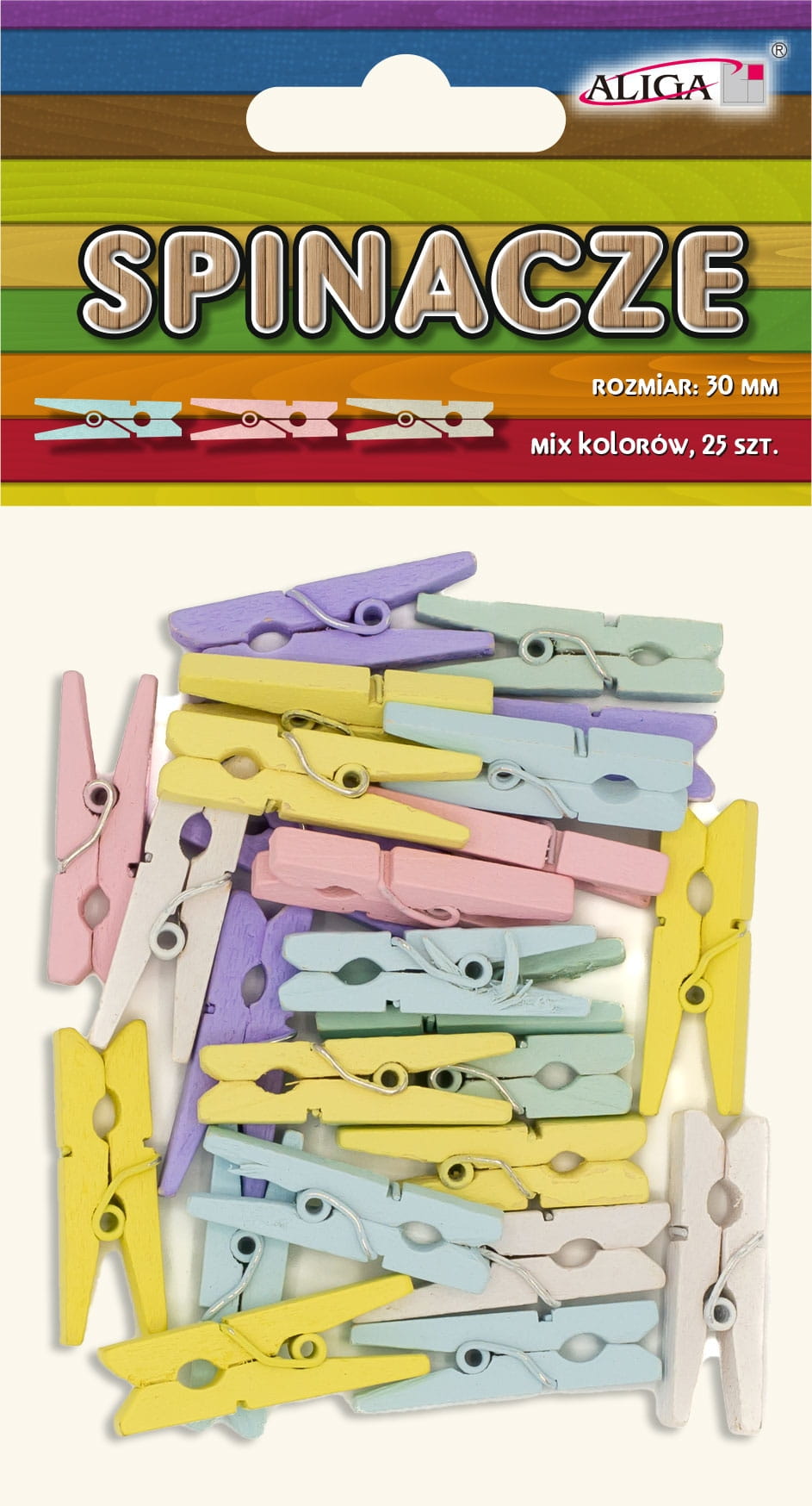 Spinacze klamerki drewniane pastelowe 30mm 25 sztuk mix, Aliga