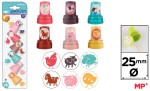 Stempelki dla dzieci z plastikowym uchwytem, który idealnie dopasowuje się do małych rączek. Pieczątki dostępne w różnych kolorach i wzorach. Świetnie sprawdzą się jako drobny upominek. Rozwijają kreatywność i wyobraźnię. Blister zawiera 6 różnych pieczątek w podobnej tematyce. Średnica pieczątki: 25mm.Wzór: FARMA