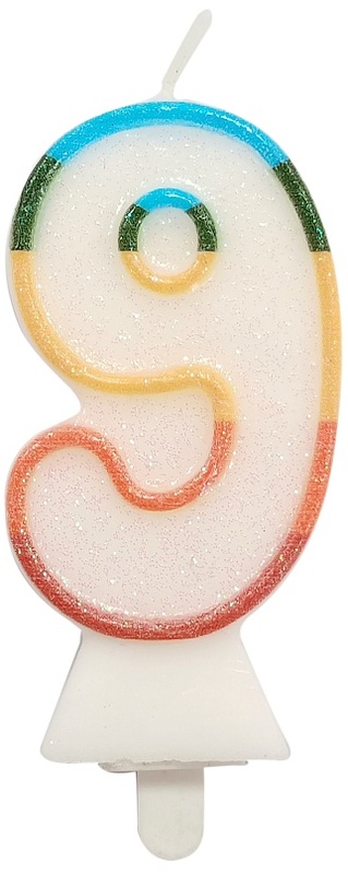 Świeczka cyferka 9, tęczowa, brokat BIO, 8,5 cm, GoDan