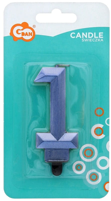 Świeczka urodzinowa Cyfra 1 Diament metalik niebieski, GoDan