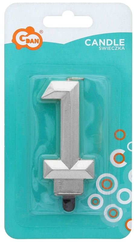 Świeczka urodzinowa Cyfra 1 Diament metalik srebrny, GoDan