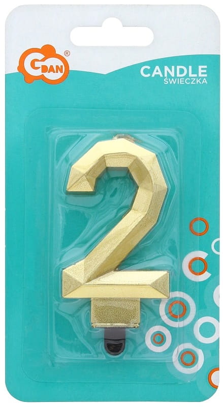 Świeczka urodzinowa Cyfra 2 Diament metalik złoty, GoDan